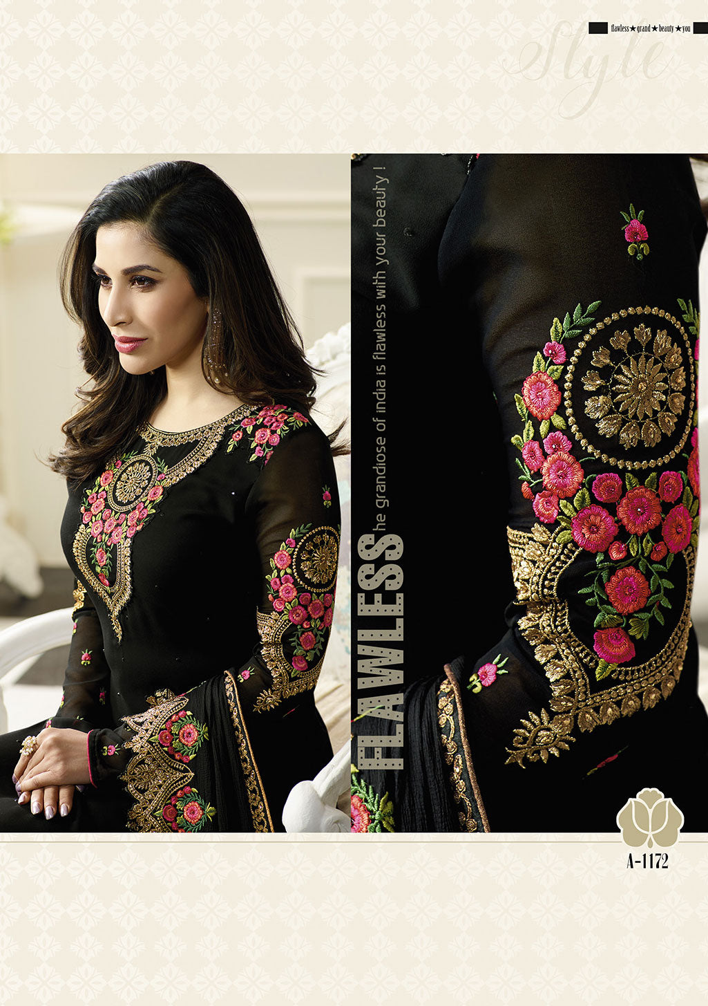 Black Georgette Embroieded Suits & Chiffon Embroieded Dupatta With Stone Work.