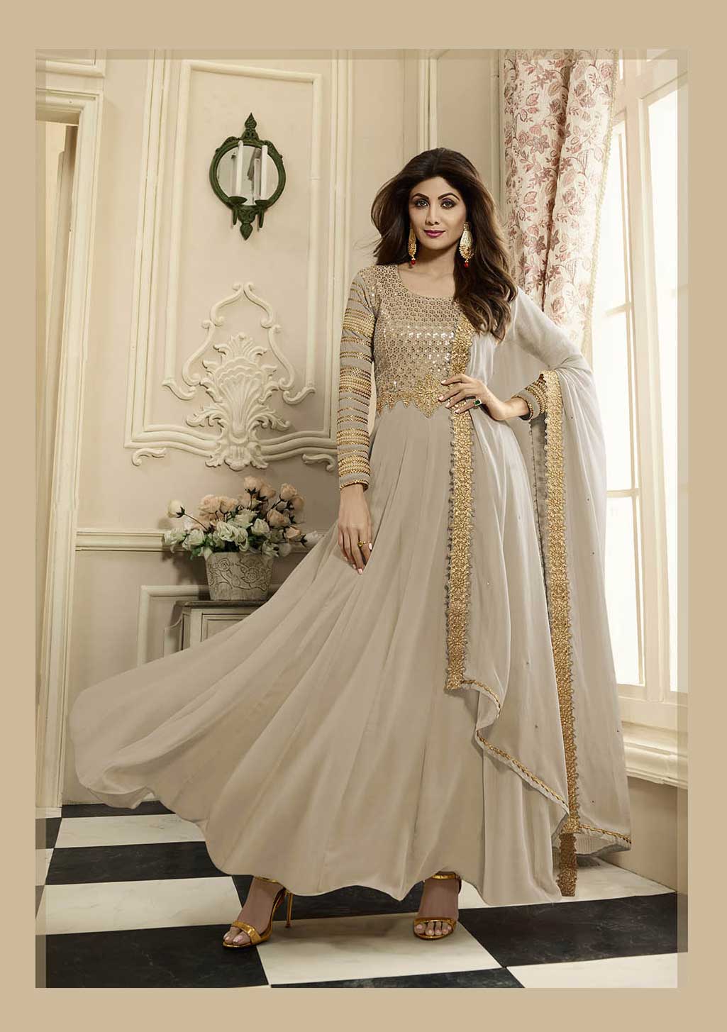 Cream Georgette Embroieded Anarkali & Chiffon Dupatta with stone work. ColorSuit: CreamDupatta: Cream FabricSuit: GeorgetteDupatta: Chiffon Cut (in mtr): 14 Work: Embroidered and stone work