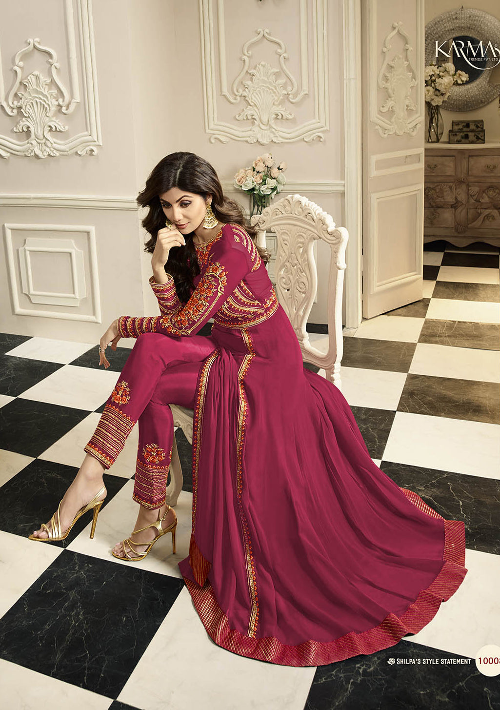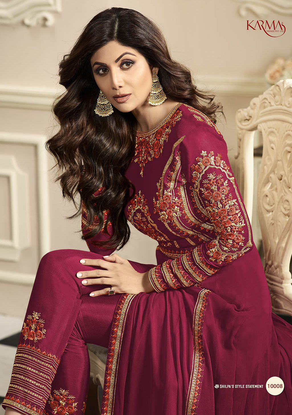 Maroon Georgette Embroieded Anarkali & Chiffon Dupatta with stone work.